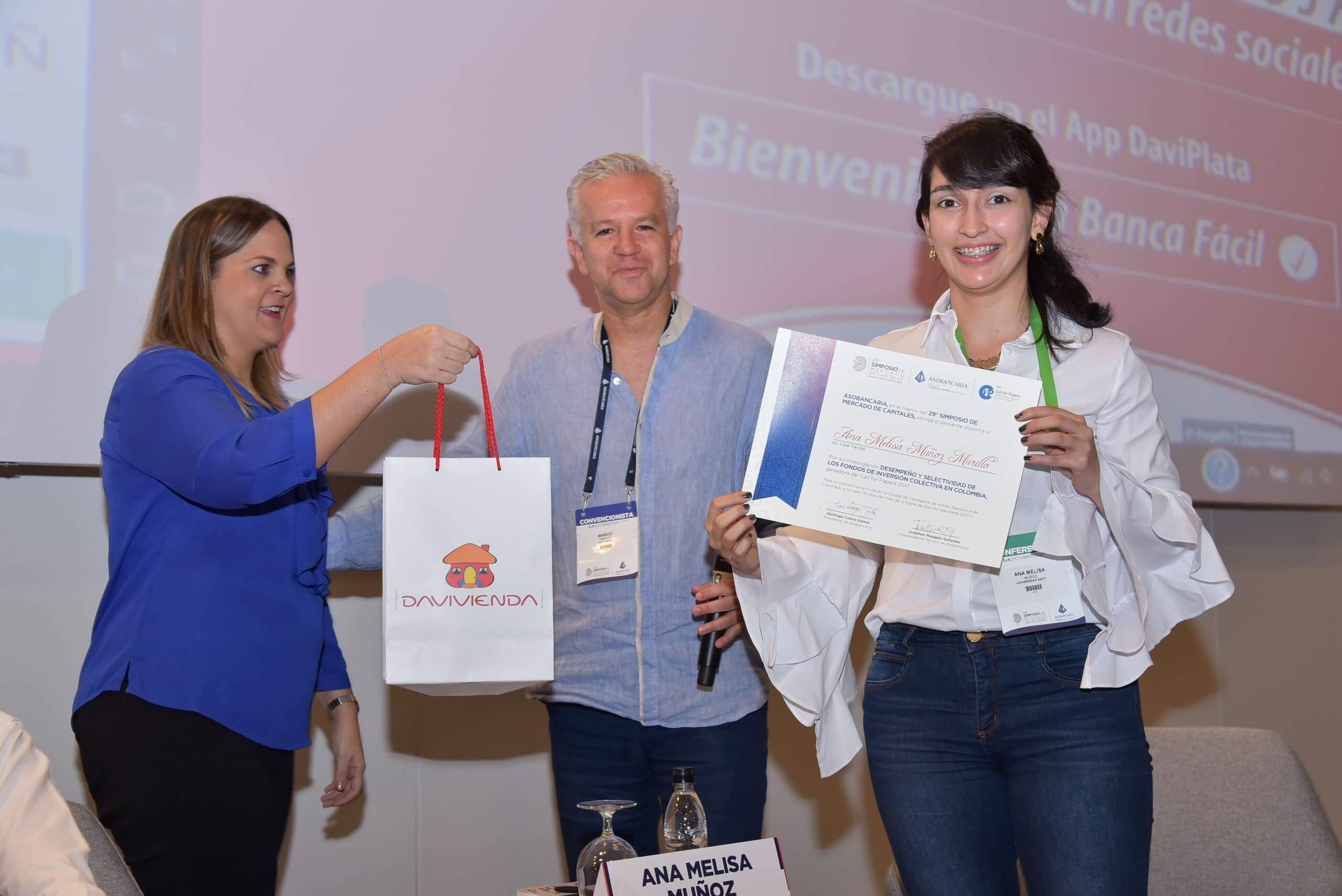 Entrega de reconocimientos a los ganadores del Call For Papers 2017 por parte de Marco Franco – Director de Tesorería de Davivienda