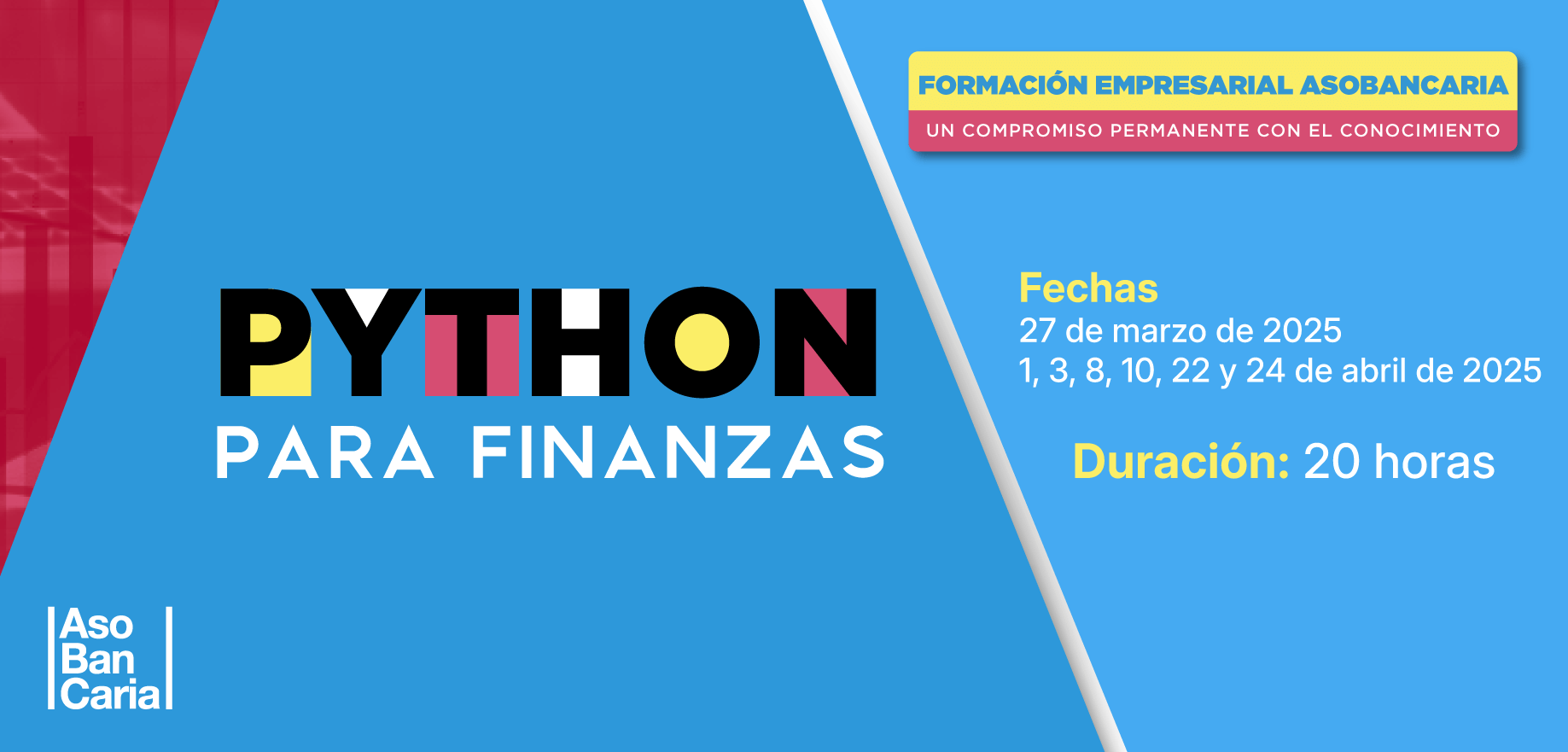 Asobancaria se reserva el derecho de admisión a nuestros eventos y capacitaciones. Fecha del curso 27 de marzo de 2025 1, 3, 8, 10, 22…